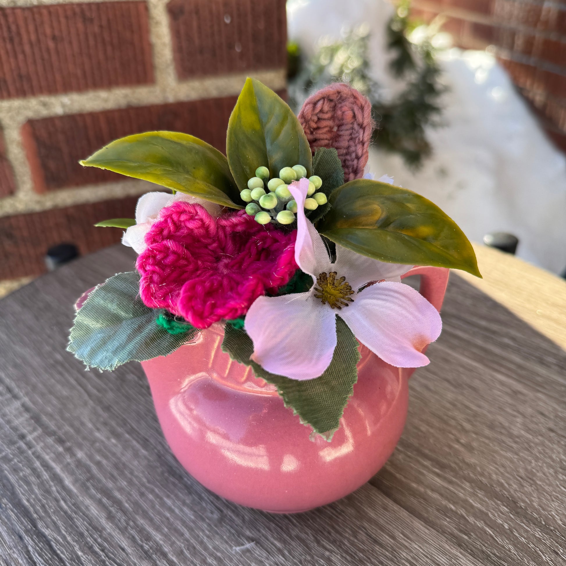 Vintage Salada Magenta Teapot Bouquet